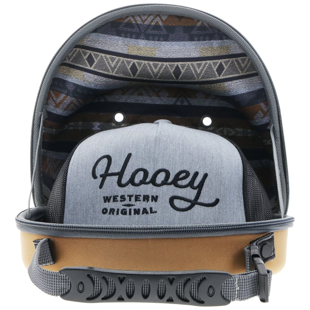 The crush proof case stores 2-3 caps and features multiple eyelets for ventilation, easy handle to hook onto your bag and Hooey Logo on the front.