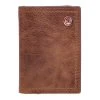 This Hooey trifold wallet features basket weave embossed roughout detailed exterior and brown interior with brown leather double welt edge & includes our custom hooey brands woven logo liner.