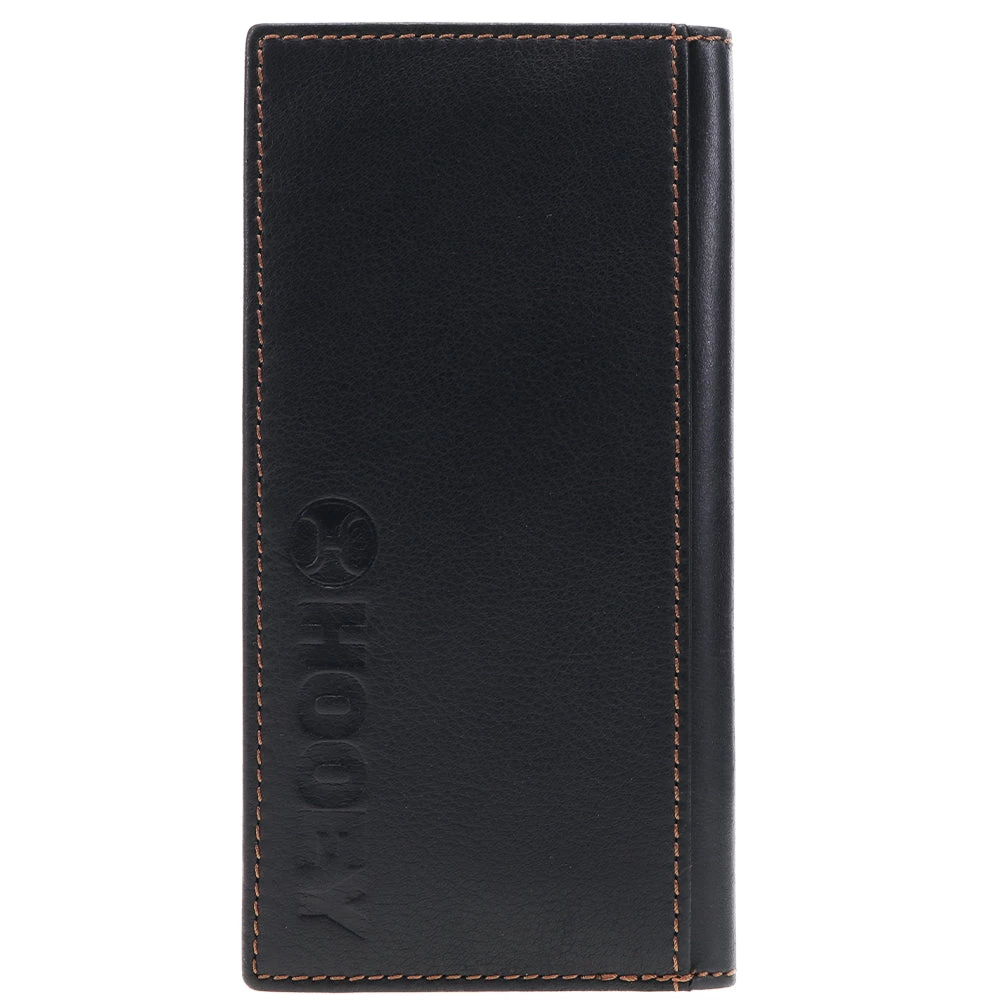 This HOG rodeo wallet features black leather detailed with a heat branded HOG logo., and includes our custom hooey brands woven logo liner.