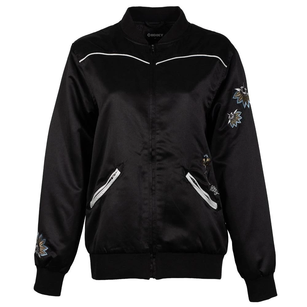 “Hooey Ladies Bomber Jacket” Black W/Floral Accents