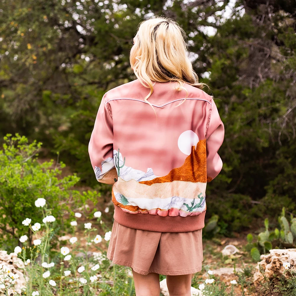 “Hooey Ladies Bomber Jacket” Pink With Desert Landscape