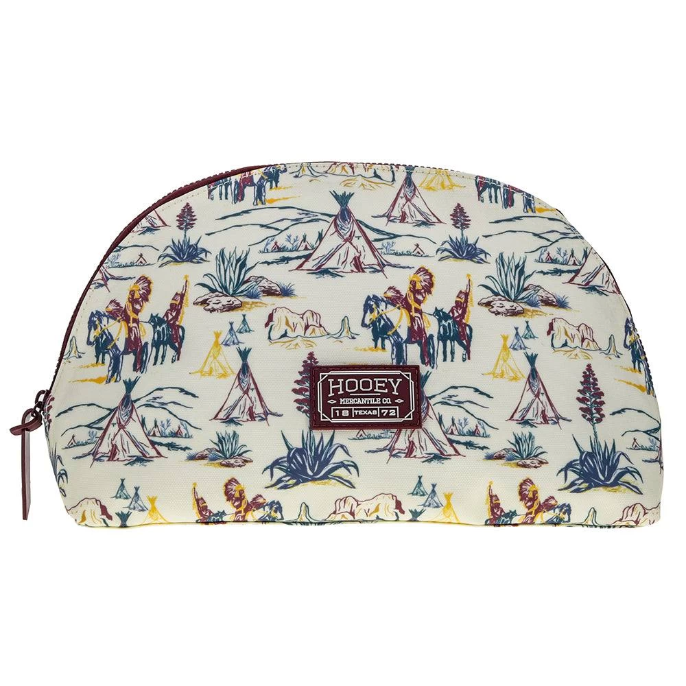 “Hooey Large Accessory Bag” Cream W/ Maroon Print