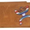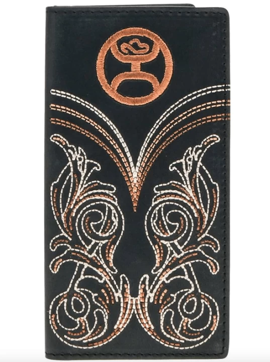 This Hooey rodeo wallet features tri-color boot stitch pattern embroidery with blank leather & hooey brands woven logo liner.