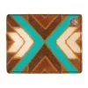 This Roughy rodeo wallet features black, turquoise embossed aztec pattern with brown double welt accent edge and includes our custom hooey brands woven logo liner.