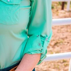 HOOey “Sol” Ladies Sea Foam Long Sleeve Pearl Snap Shirt