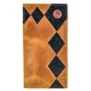 This Hooey front pocket bifold wallet features a brown/black exterior with a liberty rope/ Flag embossed design and brown interior and includes our custom hooey brand woven logo liner.