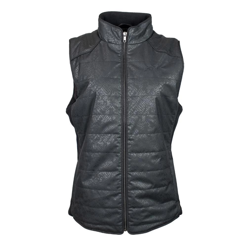 This Youth Girls “Hooey Quilted Vest” features a black shell construction and a unique snake pattern, and includes a full-zip closure.